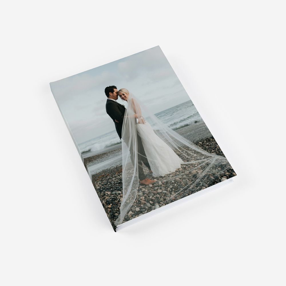 A capa rígida em cartão duro oferece proteção adicional e um acabamento elegante ao teu álbum.