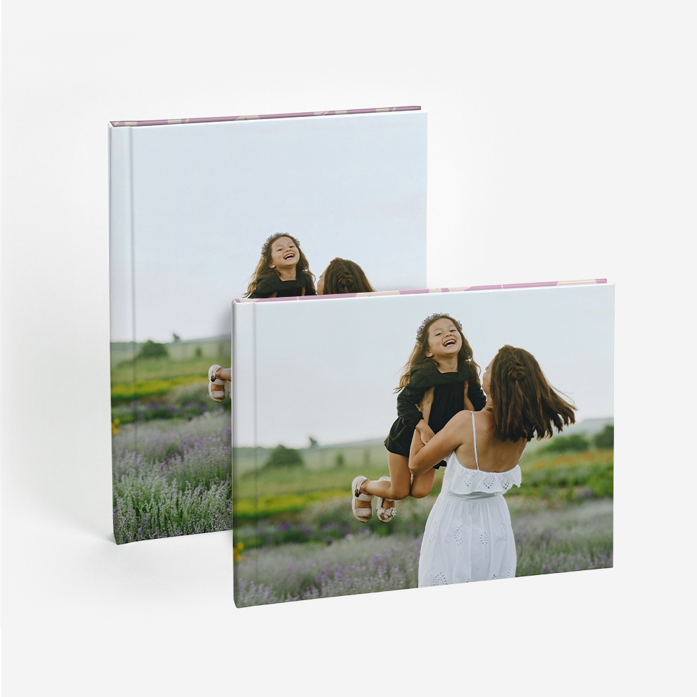Os Álbuns Analógicos em Linho com Janela são compostos por páginas para colares as fotos com stickers.