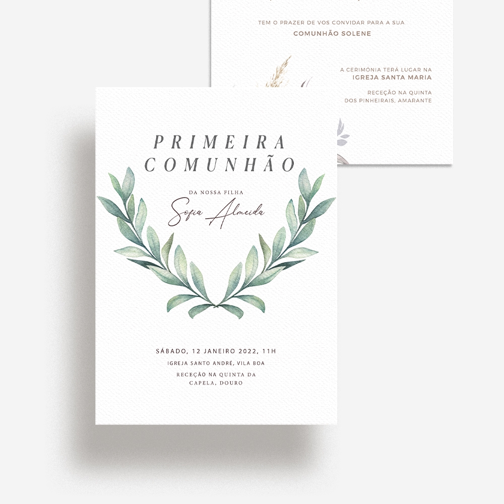 Os teus Convites de Comunhão serão impressos em papel tintoretto, que oferece alta qualidade, conferindo um aspecto único e artístico a cada impressão.