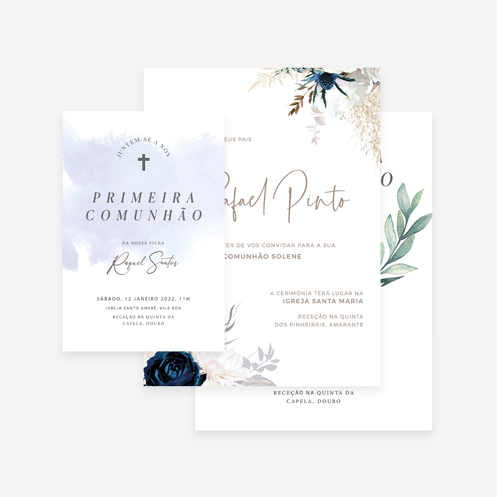 Seja para a primeira comunhão ou para a comunhão solene, personaliza os convites no Editor Online Dreambooks. Podes começar a criar o convite de raíz ou utilizar um dos modelos totalmente personalizáveis. Cria convites online originais e de qualidade com a opção de adicionar um envelope colorido e fechar com lacre.