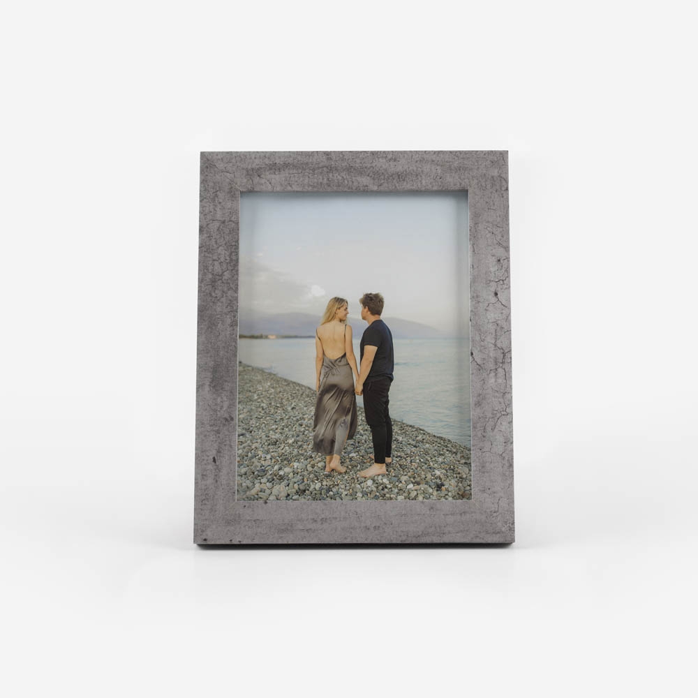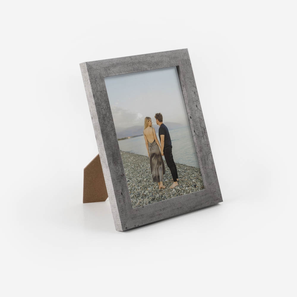 Moldura de alta qualidade, fabricada num material com aspeto concreto, garantindo durabilidade e um acabamento perfeito para destacar as tuas fotos.